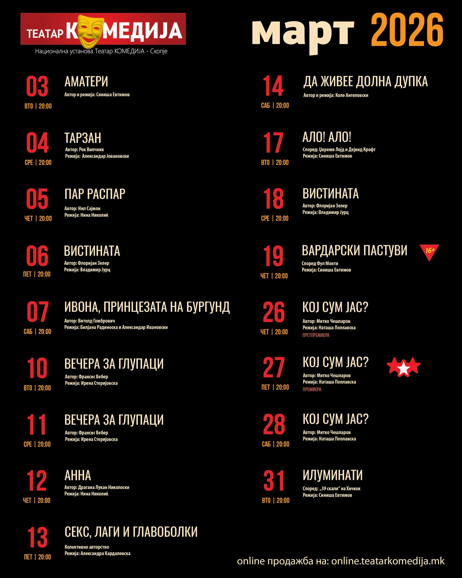 Театар Комедија – 2025 год.